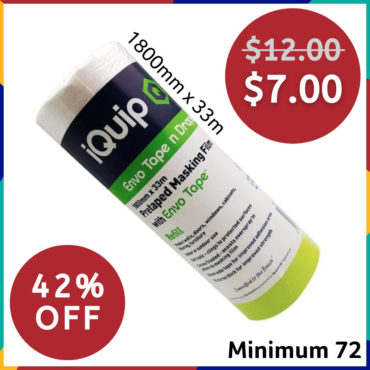 iQuip Pre-taped Masking Film REFILL 1800mm x 33m - 3 x Cartons of 24